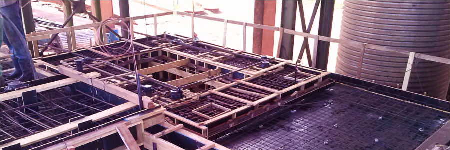 Construção Moenda em concreto armado com a execução de fundação,vigas blocos, pilares e bases com: